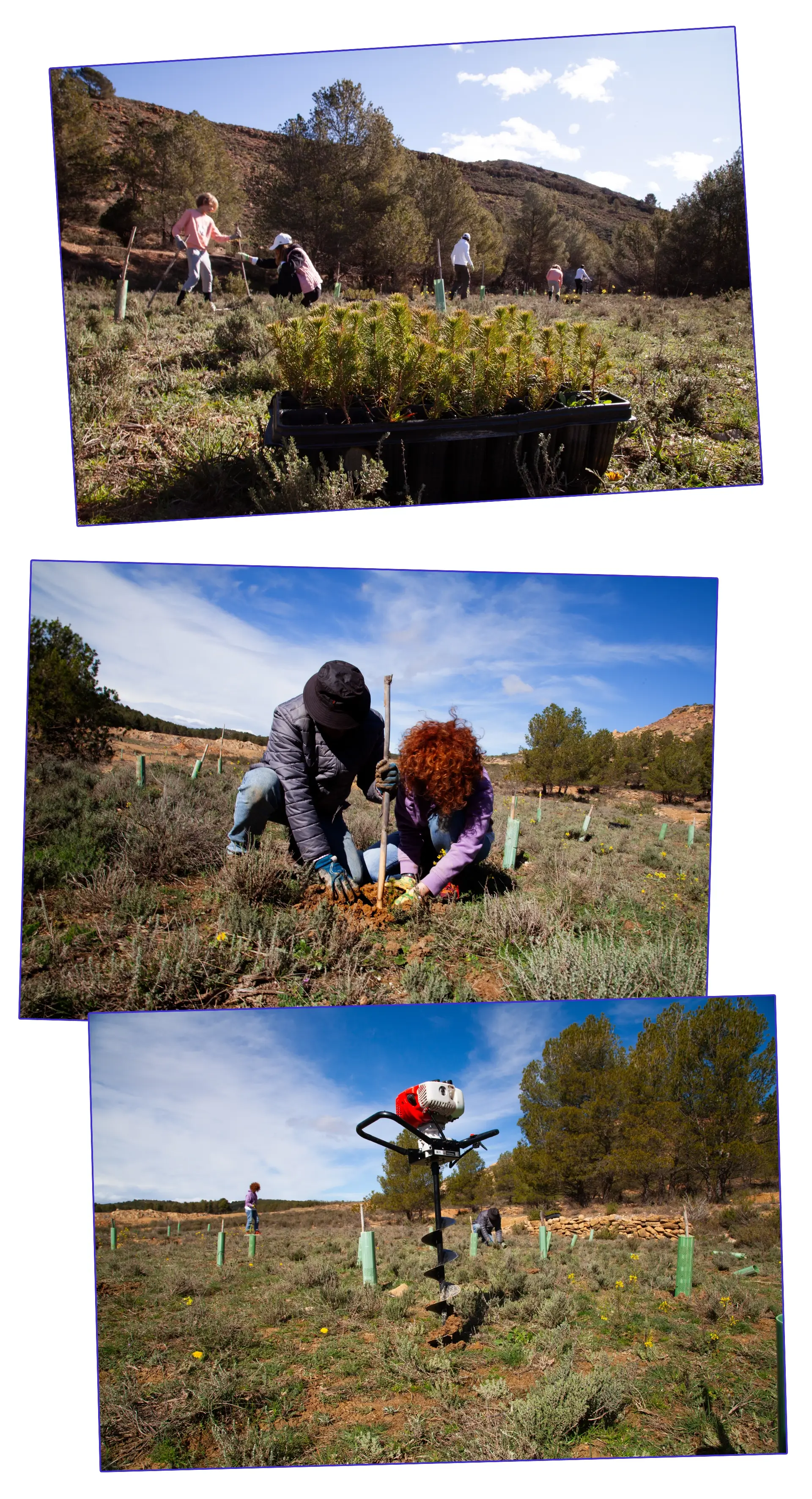 - Reforesting Spain: With offices in Spain, we selected the village of Oliete (Teruel) for our first collective planting effort. This area is under threat from depopulation and soil degradation. We committed to planting 65 native trees, working with the local community to restore the landscape and support biodiversity in December 2024.